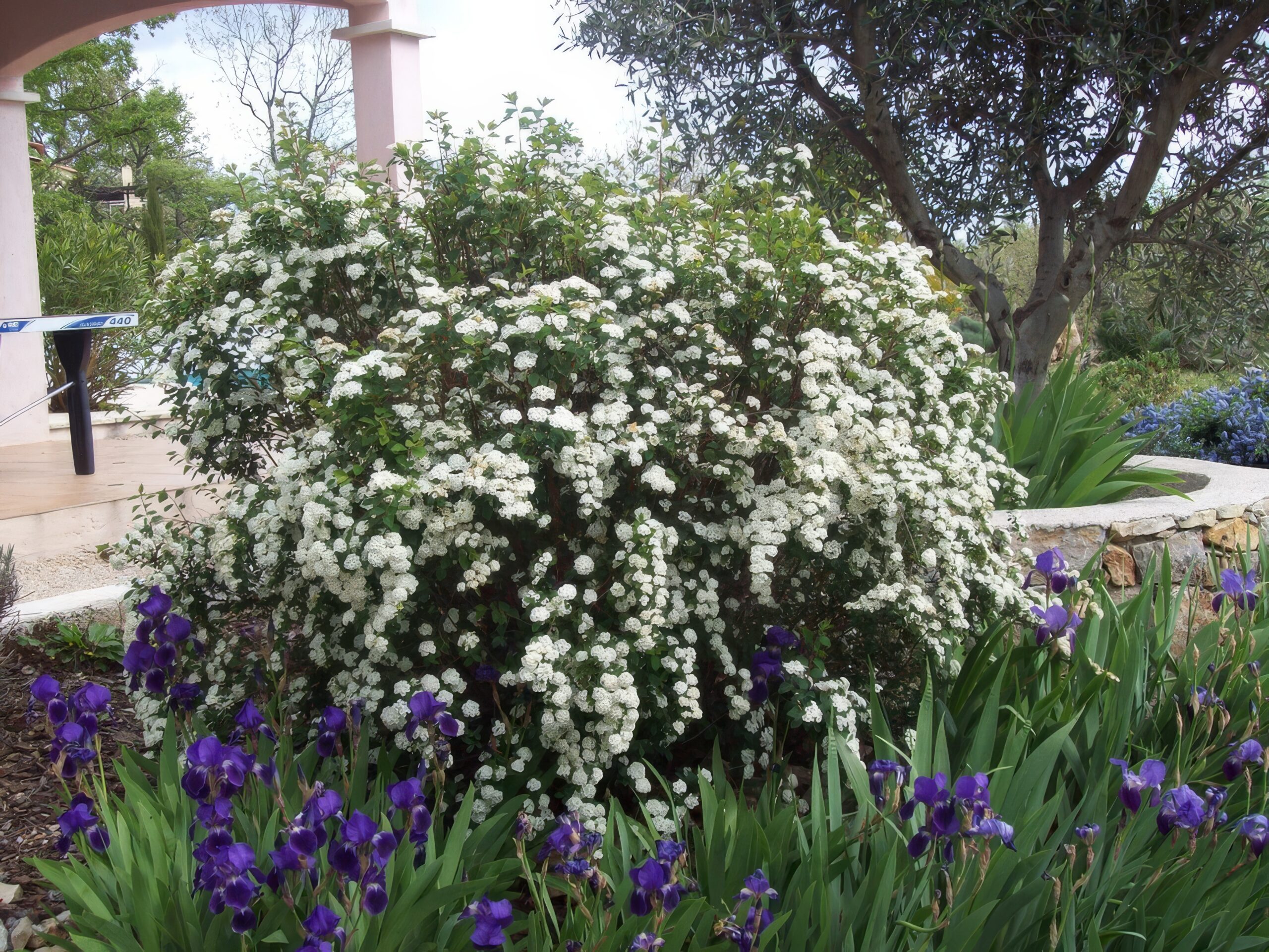 Terras met eettafel voor 8 personen.